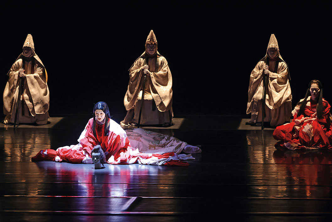 剧中,酒神狄俄尼索斯为了惩罚不信奉他的底比斯王彭透斯,迷惑他的信众——包括彭透斯的母亲阿高埃在内的底比斯女人的灵魂,诱使她们杀死彭透斯。神志不清的阿高埃提着彭透斯的头颅回到城中,清醒后发现儿子被自己亲手杀死,对待这一场戏,演员不是泪如雨下的哭诉和歇斯底里的哀嚎,而是长时间里保持一片死寂,但那被压抑的愤怒、绝望与悔恨不亚于火山般爆发,并化作生命尽头的一声嘶吼。这就是“铃木训练法”的生动诠释。