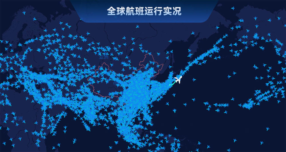 走进航旅纵横的科技成果展示厅,《环球》杂志记者瞬间被眼前的几块数据展示大屏幕所吸引——屏幕上跳动着的是全球航空数据的实时脉动,色彩斑斓的图表与线条交织出一幅幅生动的航空运输画卷。