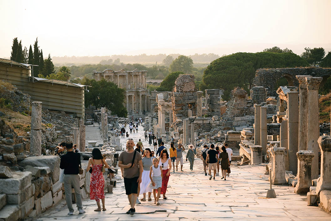 2024年7月22日,人们在土耳其伊兹密尔附近的以弗所古城参观