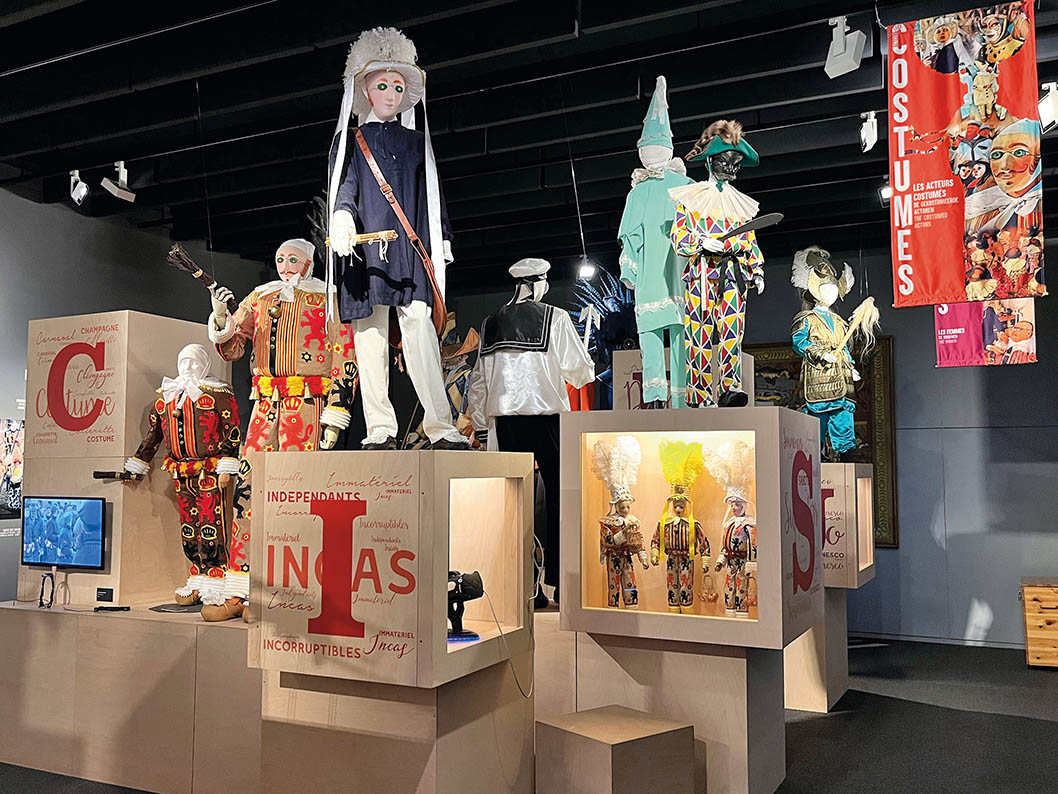 博物馆展厅的墙上陈列着历年举办狂欢节的海报与照片,从泛黄的黑白照片到清晰的数码影像,角色的装扮几乎没有什么改变。除了标志性的吉尔,你还能看到一起参与游行的身穿彩色罩衫的小丑、戴着黑狼面具的水手、穿着蓝色工装的农民等。