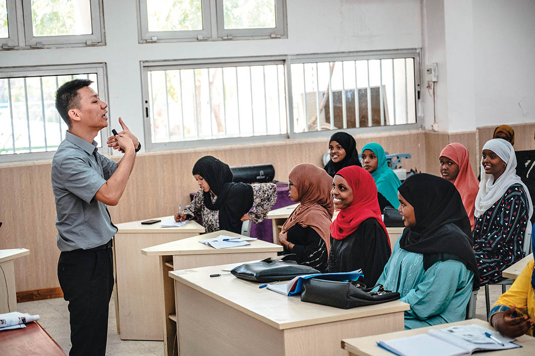 夕阳西下,在吉布提首都吉布提市,街上行人逐渐多了起来。45岁的吉布提大学教授瓦贝里行色匆匆,正赶往吉布提外交学院的中文课堂学中文。“中国的经济发展很快,吉布提有不少中国企业,我觉得中文是很重要的商业语言。”2019年,瓦贝里曾到中国的吉林大学交流过一个月,从此便喜欢上中文,已经坚持学习中文3年。