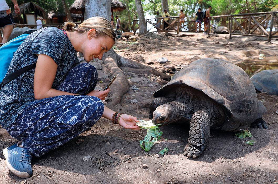 据说,这些象龟是由早期的西方殖民者从塞舌尔带来的。潮湿的气候、舒适的环境、充足的食物很适合象龟生存,到今天,它们早已成为岛上的“常住民”。