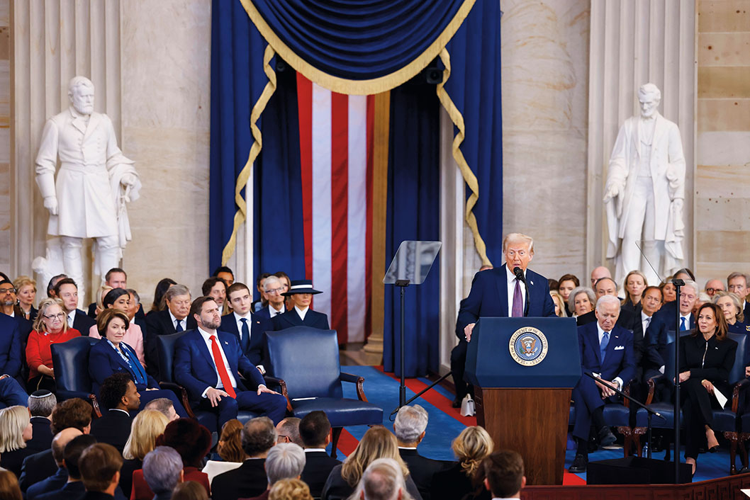 1月20日,在美国首都华盛顿国会大厦圆形大厅,特朗普在美国第47任总统就职典礼上发表讲话