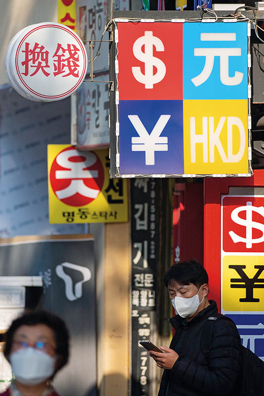 这是2022年11月24日在韩国首尔明洞街区拍摄的换钱所