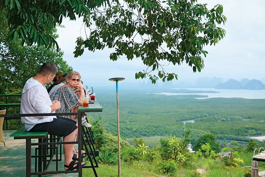 2024年11月21日,游客在泰国攀牙府一处观景台休憩