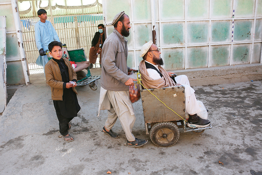 与哈桑相比,记者见到的更让人揪心的是那些被重疾击垮的阿富汗难民,更有甚者,躺在棺木里被家人朋友们用板车推着跨过了边境线。