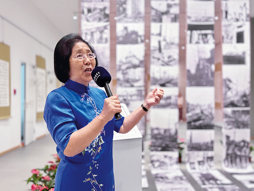 8月15日,战时民间摄影师、医生叶善定的后人叶良骏在上海市黄浦区图书馆参观纪念抗战胜利 80 周年主题展。现场展出的103幅黑白老照片,系叶善定于淞沪会战期间悄悄拍摄,记录下了上海南市地区遭侵华日军轰炸后的惨状