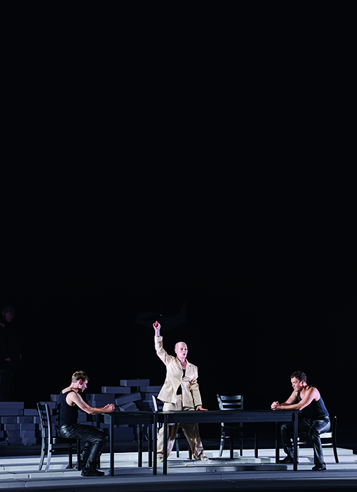 卡琳·拜尔:的确没有绝对的对与错,这正是我非常喜欢的地方。《伊俄卡斯忒》中的两兄弟都是错的,但他们又都有自己的理由。同样在《狄奥尼索斯》中,作为对手的彭透斯和狄奥尼索斯在某种程度上其实非常相似,都认为自己所想的就是正确的,且符合城邦的利益。我认为这样的设置很好,它让观众很难决定到底站在谁那一边,因为即便一开始你想选择一方,接下来你也会发现他还有另一面。这让你变得不确定,就不会轻易说谁对谁错。我想要做的,就是让人们去讨论、去思考。
