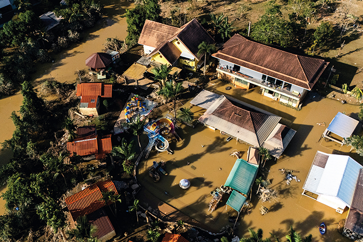 2025年11月30日在泰国宋卡府合艾市拍摄的被洪水侵袭的地区(无人机照片)