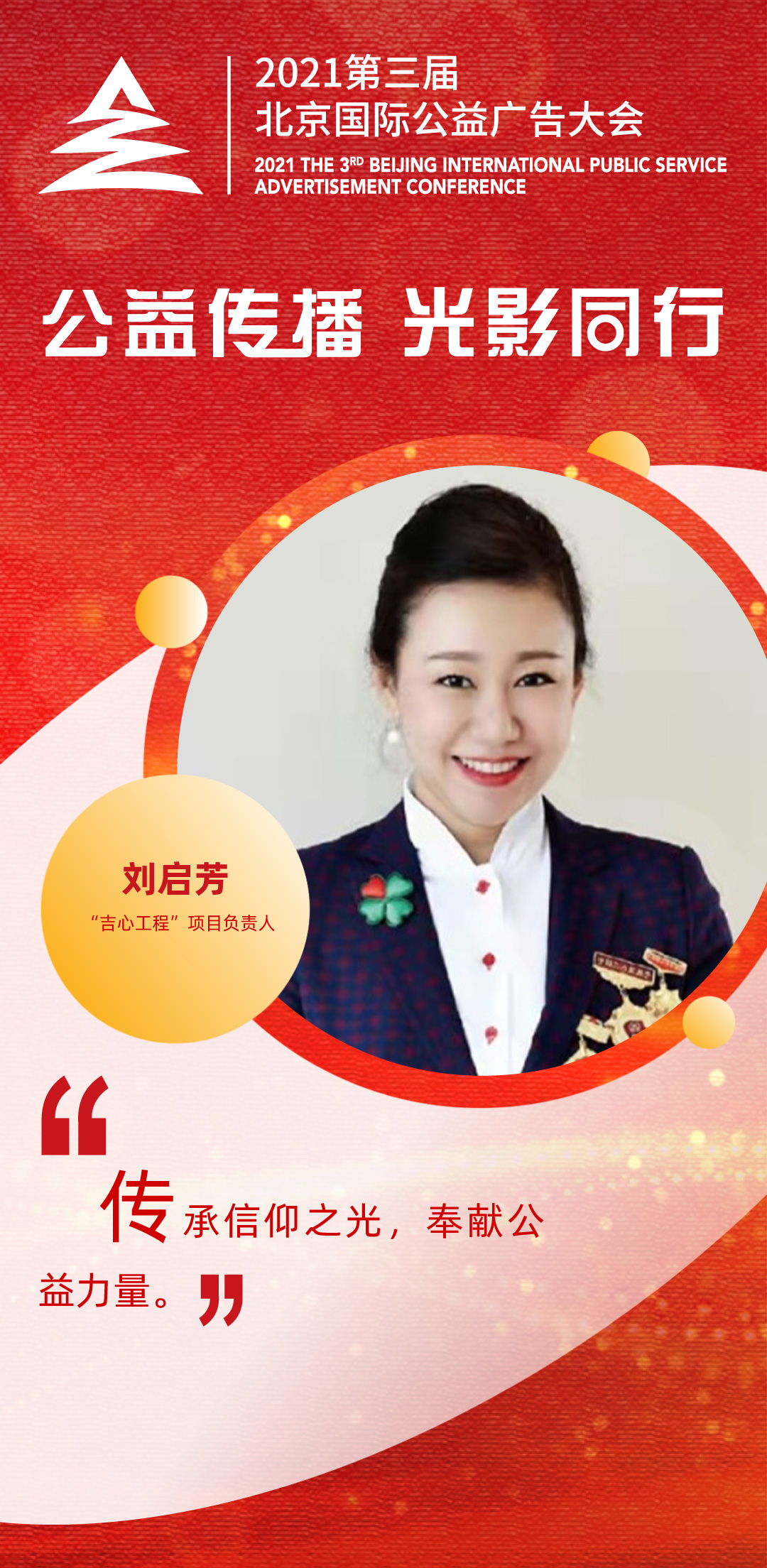 “公益传播,光影同行。”由国家广播电视总局、北京市人民政府指导,中共北京市委宣传部、北京市广播电视局主办的2021第三届北京国际公益广告大会于12月8日——10日以“线上+”方式举办。大会旨在聚焦新视听高质量发展和提升国际传播能力,唱响主旋律、传播正能量,打造具有国际影响力的品牌活动。全国道德模范、全国脱贫攻坚先进个人刘启芳在大会举办期间接受新华网访谈,分享她心中的信仰之光与公益力量。