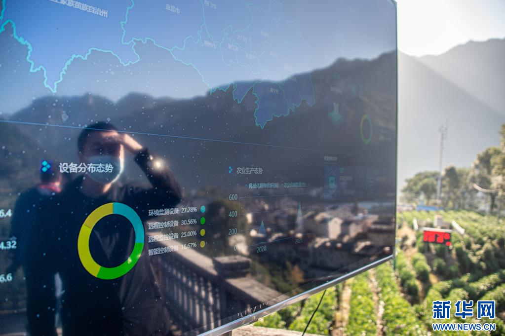 11月10日,参观者观看秭归县建东村白茶园示范基地的大数据指挥中心屏幕。 作为国家数字乡村试点地区,湖北省秭归县积极推进信息基础设施建设、智慧农业和乡村数字治理,将数字经济与传统农业产业融合发展,推出集智慧生产、智慧营销、智慧供应链于一体的科技农业示范基地及农业信息化综合应用平台,助力乡村振兴。 新华社发(伍志尊 摄)