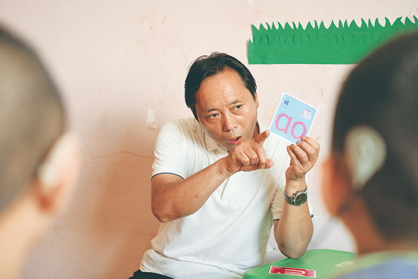赵小平在给听障儿童做发音练习。图片均由杨仁海摄
