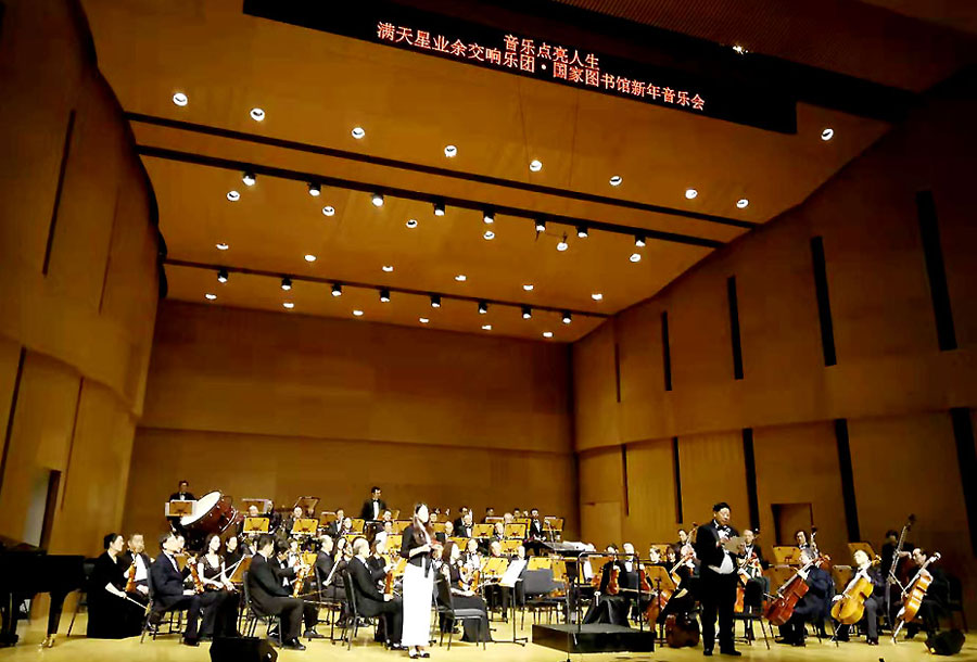 新华网北京1月5日电(记者高海英)由国家图书馆、满天星业余交响乐团共同举办的2022年“音乐点亮人生——满天星业余交响乐团·国家图书馆 新年音乐会”1月4日晚在国图艺术中心音乐厅奏响,以精彩的公益类交响音乐会送上新年祝福。