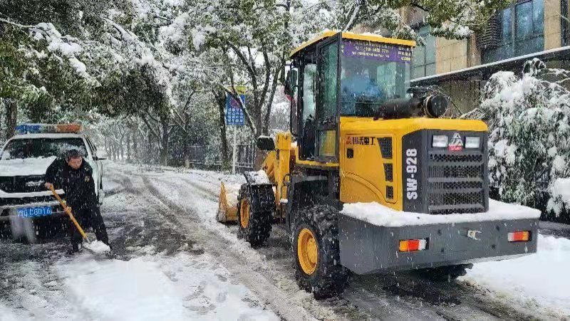 在铜陵市铜官区天井湖社区,铲车正上阵除雪。新华社发(王炜 供)