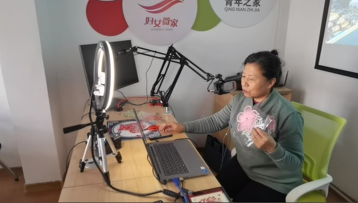 青岛西海岸新区民间艺人赵丽华的剪纸作品在当地十分出名。在给印尼青少年上“网课”之前,她曾在多所高校为外国留学生传授过剪纸艺术,受到外国学生的欢迎。
