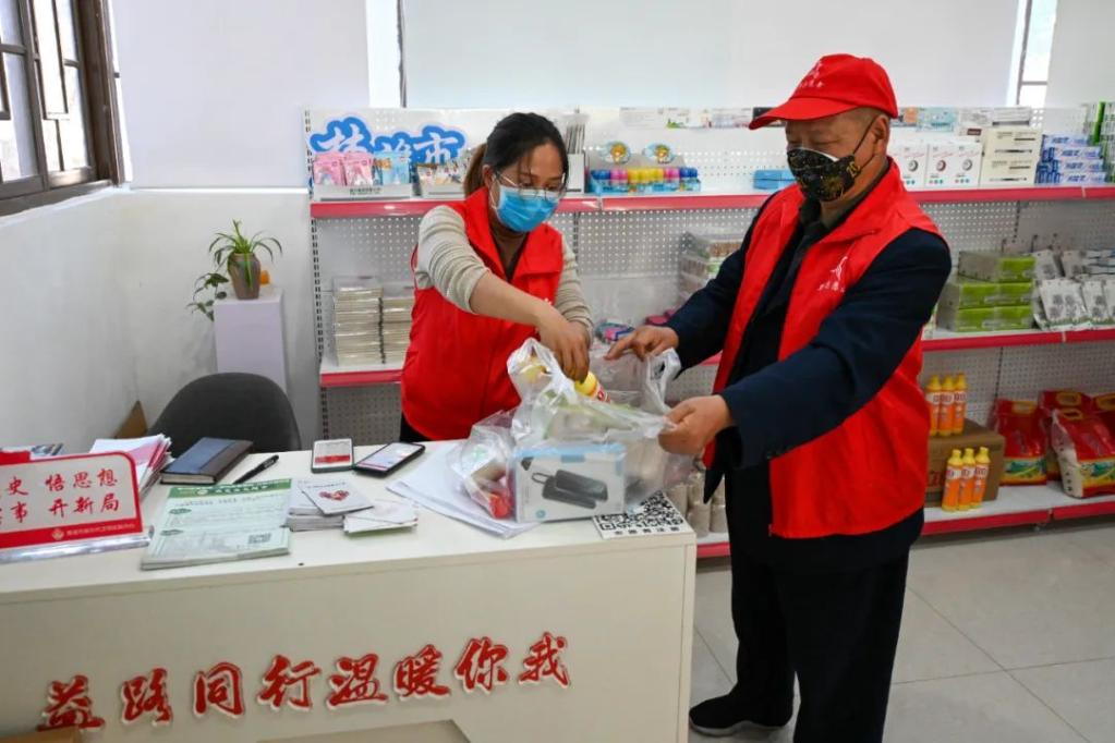志愿者在“威楚益兑超市”用志愿积分兑换生活用品 曹梦瑶 摄