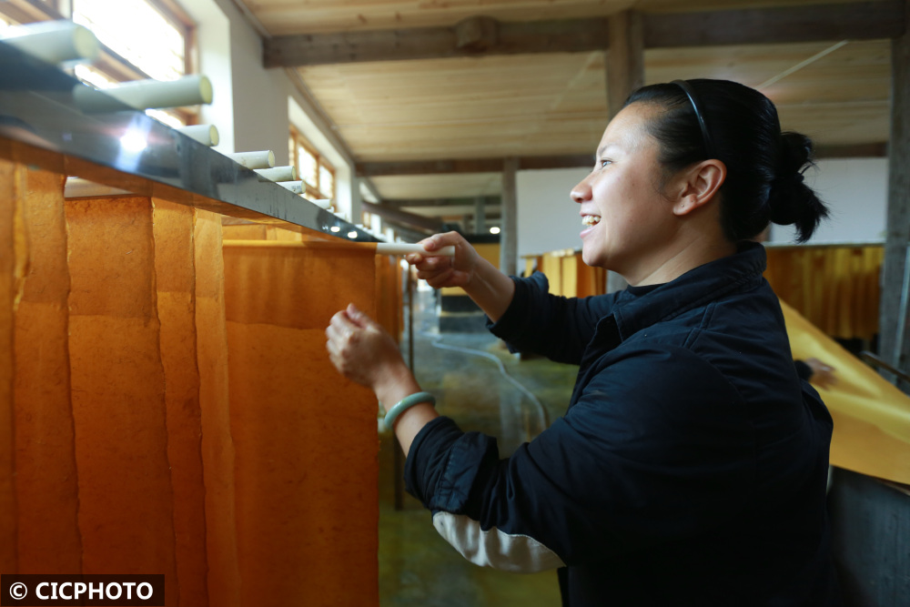 连日来,贵州省黔东南苗族侗族自治州丹寨县南皋乡石桥村的造纸手艺人忙着以传统工序赶制订单,造纸坊里一派忙碌。