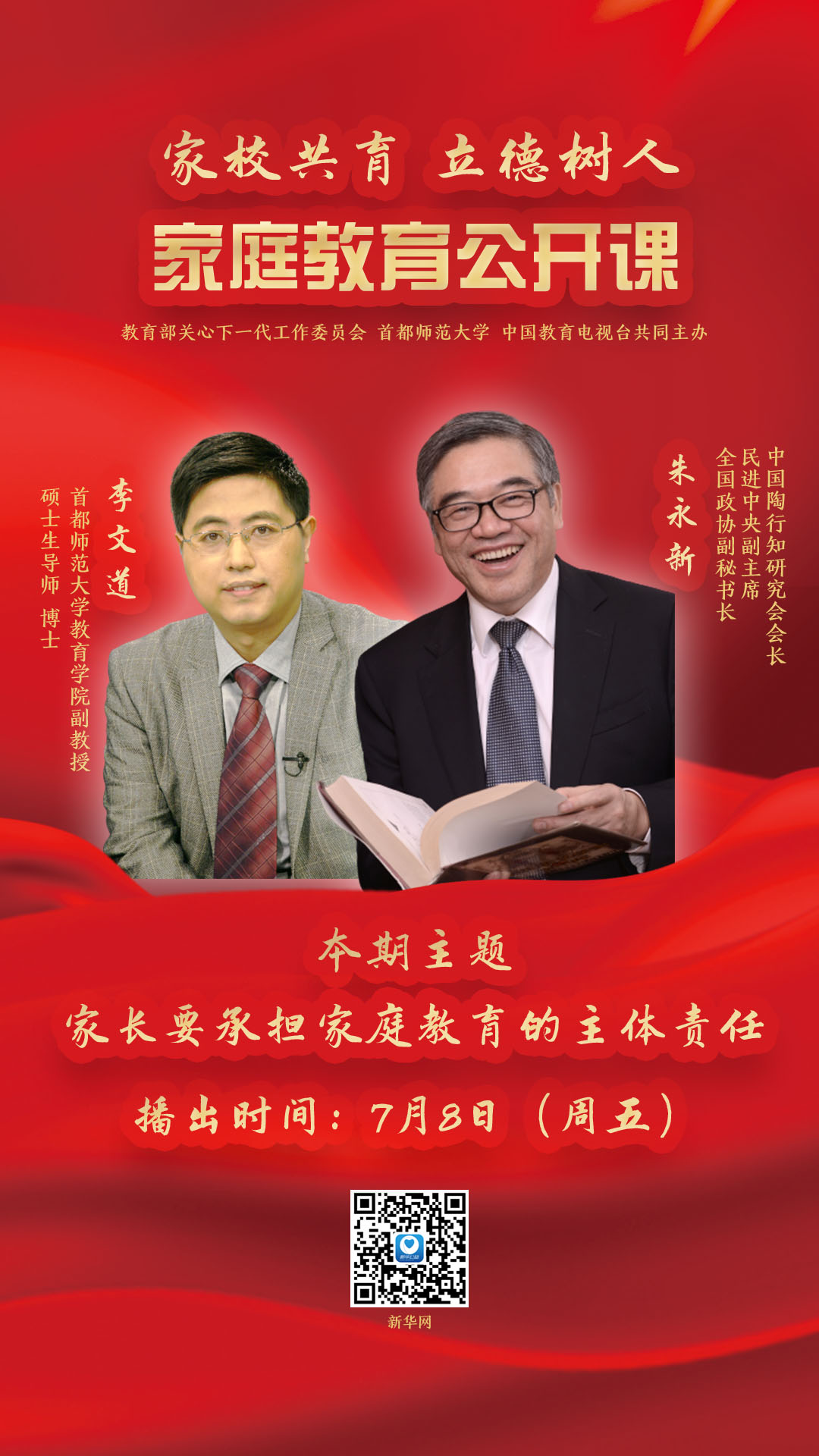 为深入贯彻落实《中华人民共和国家庭教育促进法》,帮助更多的家长掌握正确的家庭教育理念和方法,教育部关工委再次联合中国教育电视台、首都师范大学共同推出“家校共育 立德树人--家庭教育公开课”,一共10节,邀请了20位知名专家教授答疑解惑。