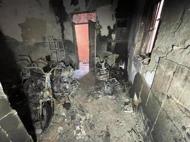 ↑电动自行车火灾事故现场(图片来自广东消防公众号)