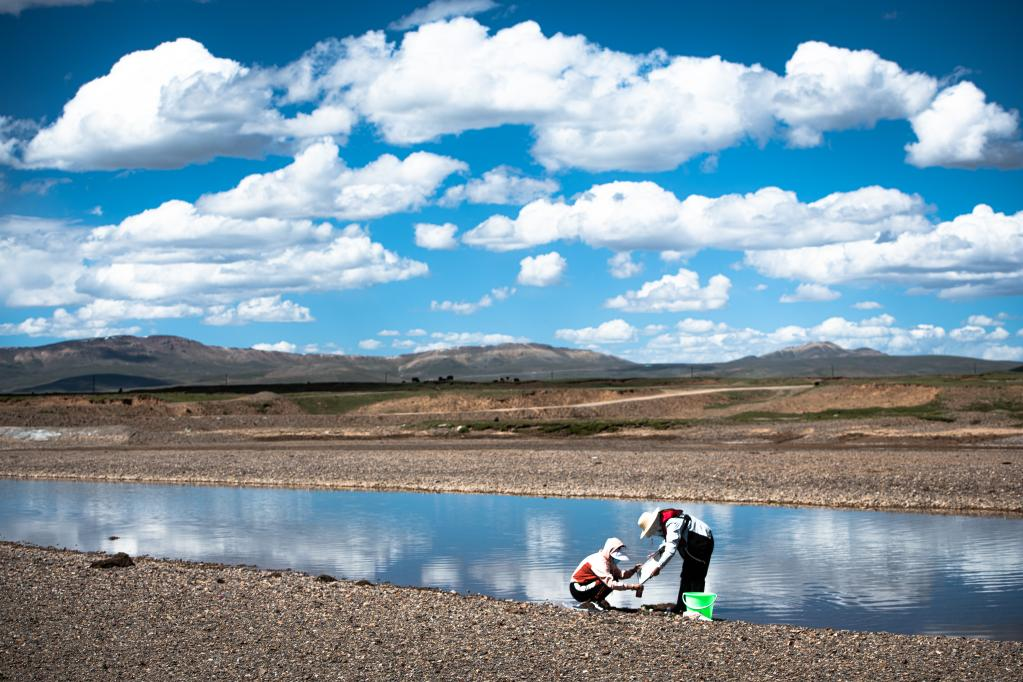 2022年江源综合科学考察中,长江源区的水生态和水环境状况是科考观测重点。每到一处采样点,来自长江科学院的“90后”科考女队员李鲁丹,就会取瓶拖网采集浮游生物标本,或用毛刷从附着基质上刷取着生藻类,或从堆在解剖盘中的河床底质里挑拣底栖动物。