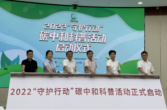 中国气象局原副局长宇如聪,国家林业和草原局原总经济师、中国绿色碳汇基金会理事长杨超,中国气象局科技与气候变化司司长熊绍员,腾讯SSV碳中和实验室主任舒展,华风气象传媒集团总经理赵会强,国家气候中心副主任袁佳双共同启动2022”守护行动“碳中和科普活动。