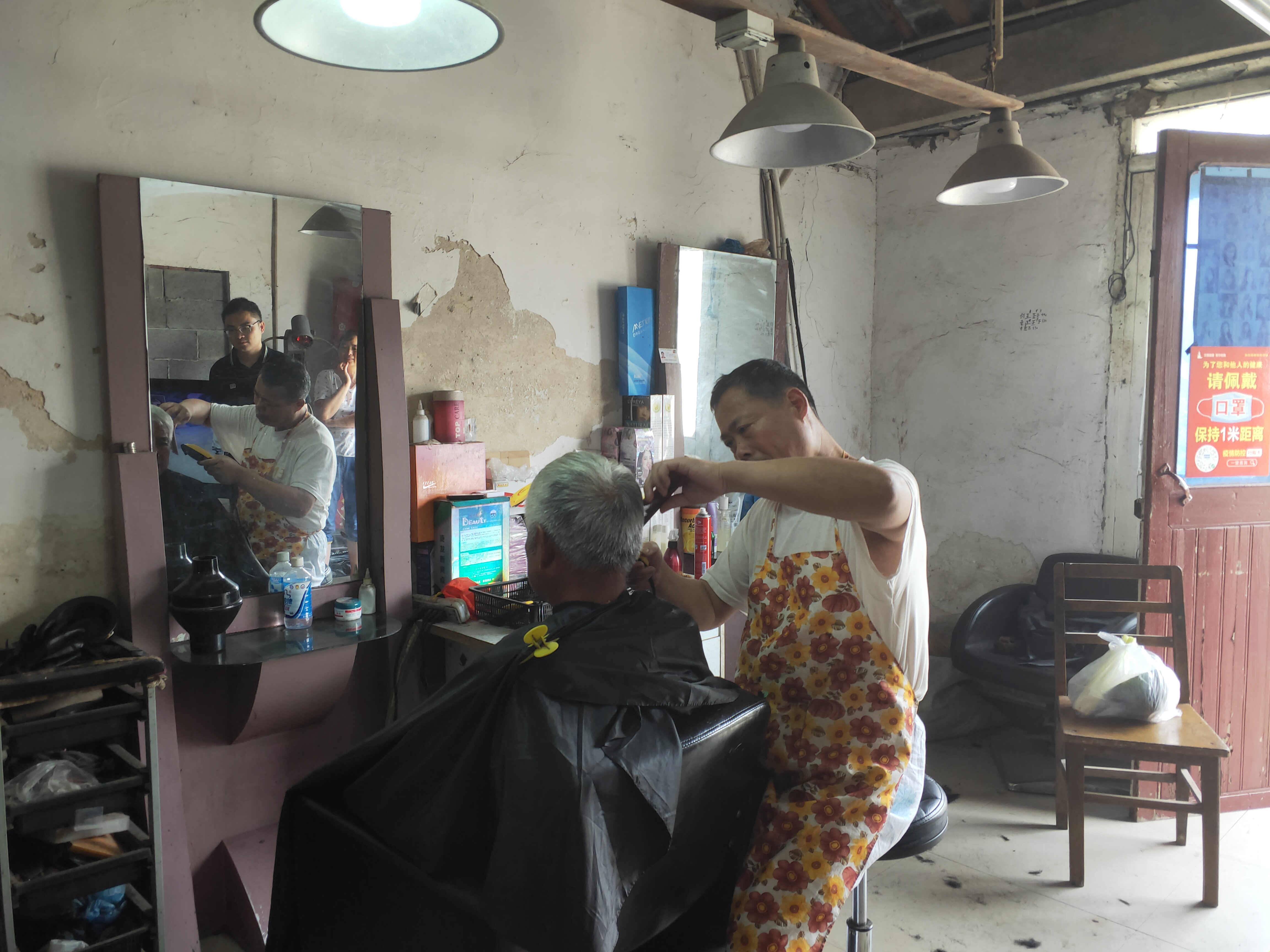 在江苏省南通市海门区临江镇鹤丰村汤家农贸市场往东约50米,路南,可以看到一间没有门头,没有招牌的理发小店。走进去,10多平方米的平房内满满的怀旧风,理发台前放着一些最基本的理发、刮胡子工具和两张理发椅子,还有一张老古董椅子。洗头理发再加上刮胡子,收费3元,沈建平用二十年如一日的“执拗”,为自己赢得了最好的金字招牌。