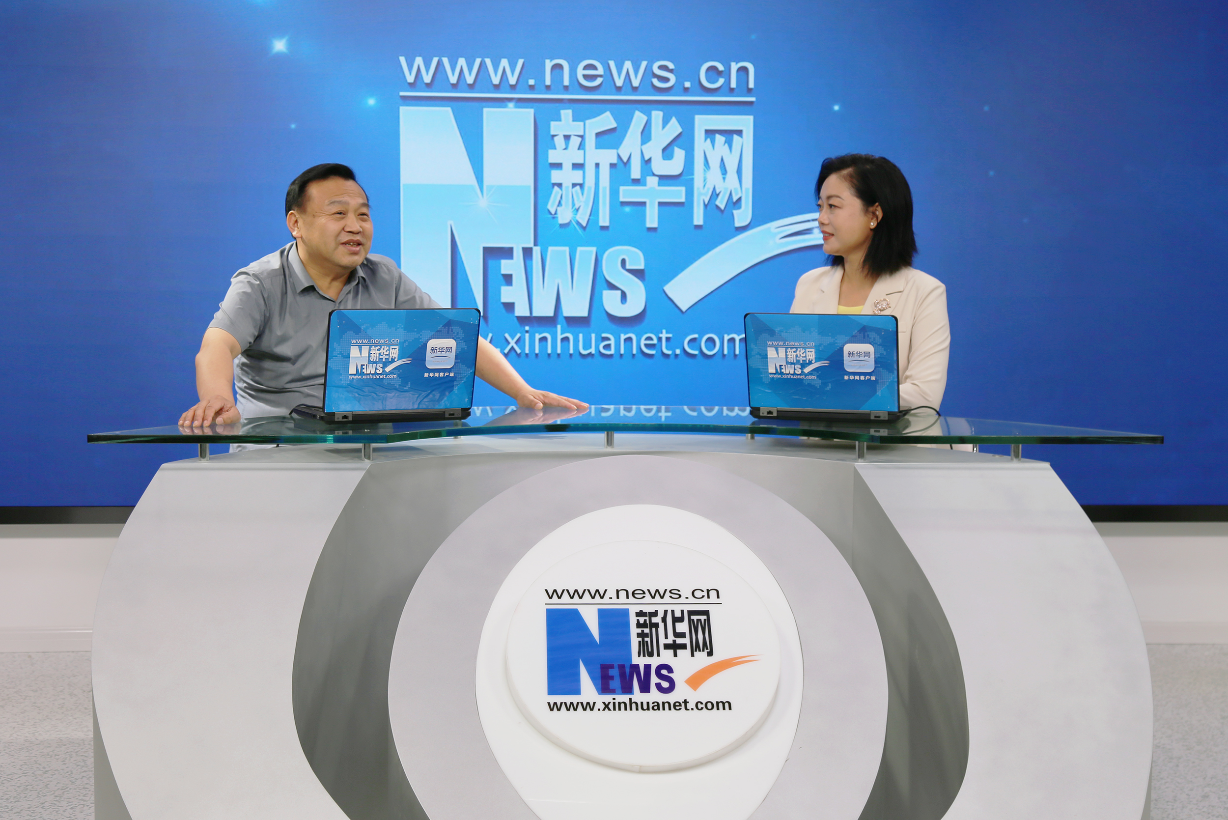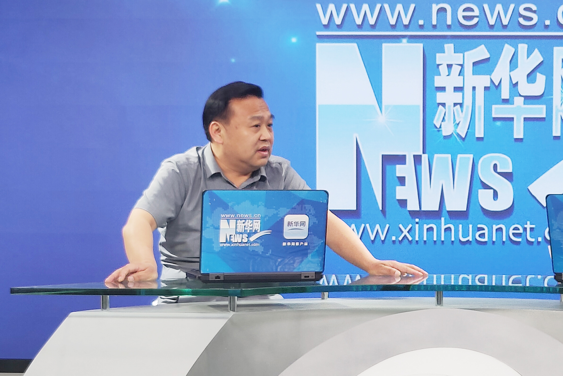 图为新华网记者在访谈现场(李然 摄)