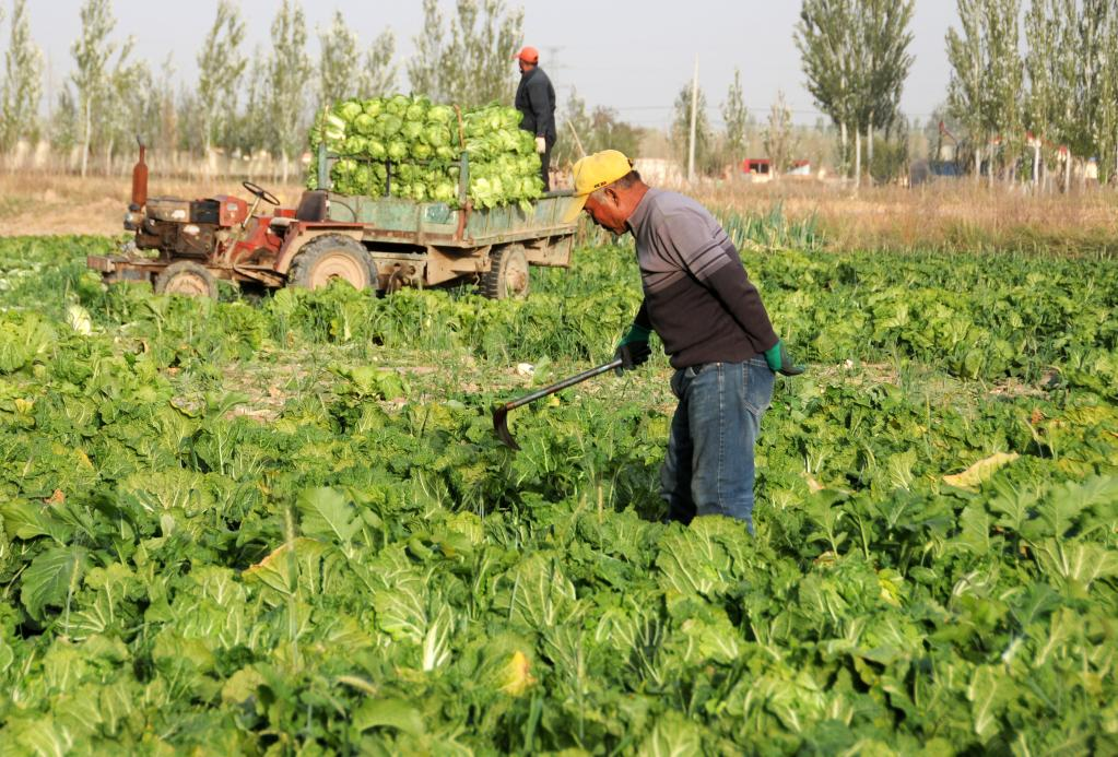 临河区干召庙镇农户正在收获白菜。新华社记者李云平 摄
