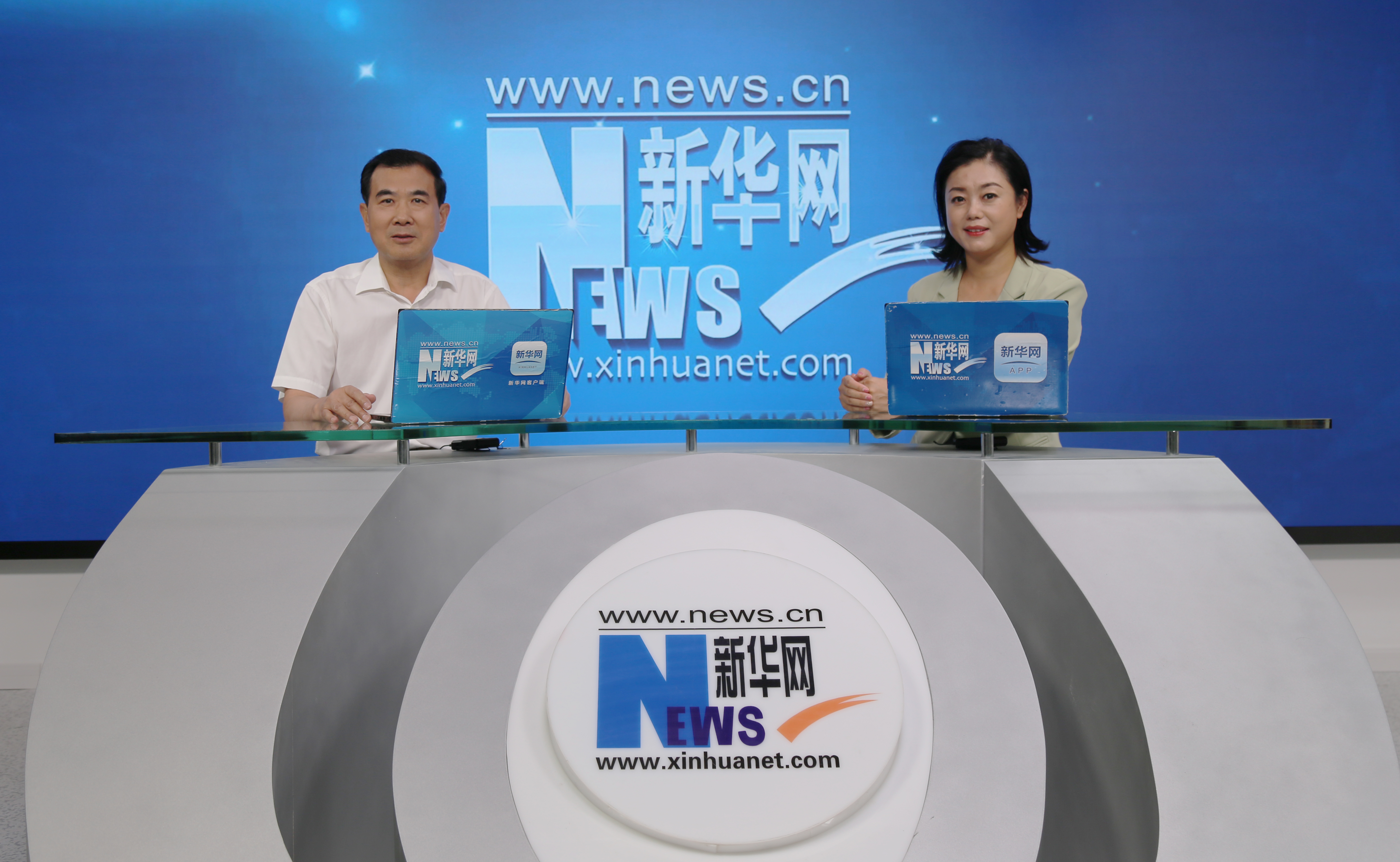 图为全国政协常委、中国气象局原副局长宇如聪(左)在新华网访谈现场(李然 摄)