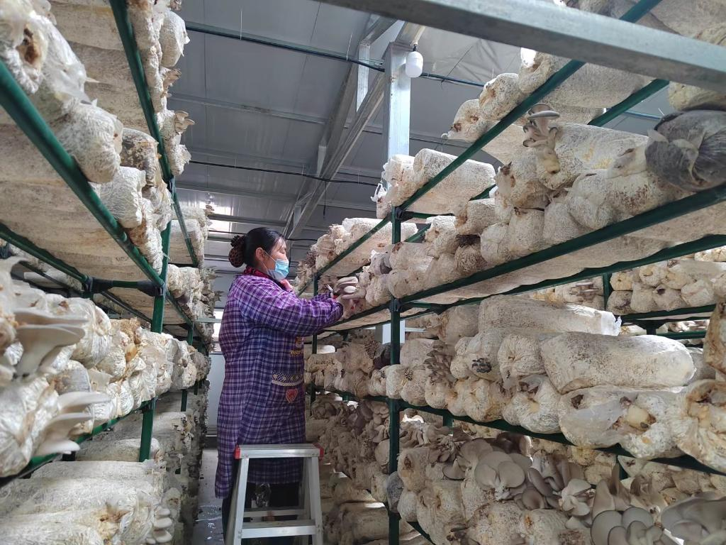 小孟镇苏户村食用菌大棚内,村民正在采摘蘑菇。(受访者供图)