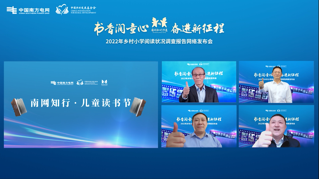 11月29日,以“书香润童心,奋进新征程”为主题的《2022年乡村小学阅读状况调查报告》网络发布会举行。本次发布会由中国南方电网公司与中国乡村发展基金会联合主办,旨在分享“南网知行书屋”项目成果并号召社会各界关注乡村小学阅读质量。多位教育界、学术界、出版界、文艺界专家、教授出席,以网络连线的形式,为推进乡村儿童教育事业贡献力量。