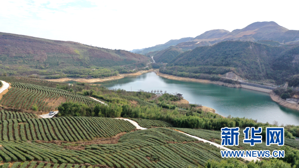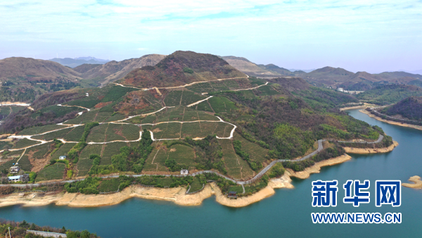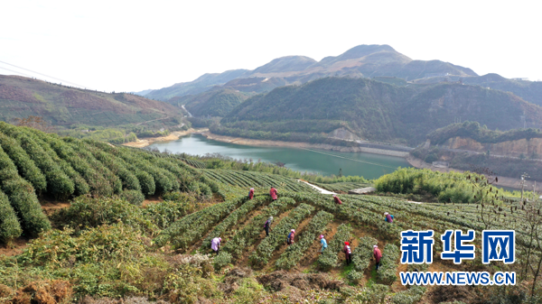 村民在毛尖镇螺蛳壳茶山上管护茶园。新华网 周远钢 摄