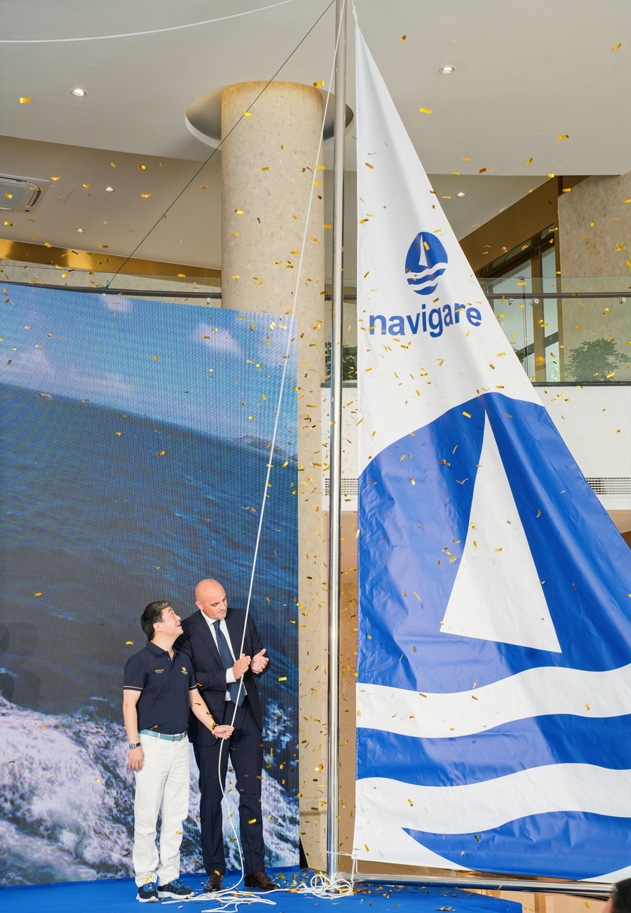 navigare大中华区总裁/邦诚国际董事长蒋志勇、navigare品牌意大利总裁Massimo Brunetti及当地政府代表、众多媒体等社会各界人士出席了活动。蒋志勇在现场分享了品牌进入中国16年以来的梦想发展之路,Massimo Brunetti也表达了对品牌未来的期许,他们一同拉起代表navigare帆船的绳索,共同见证了品牌历史性的重要时刻。