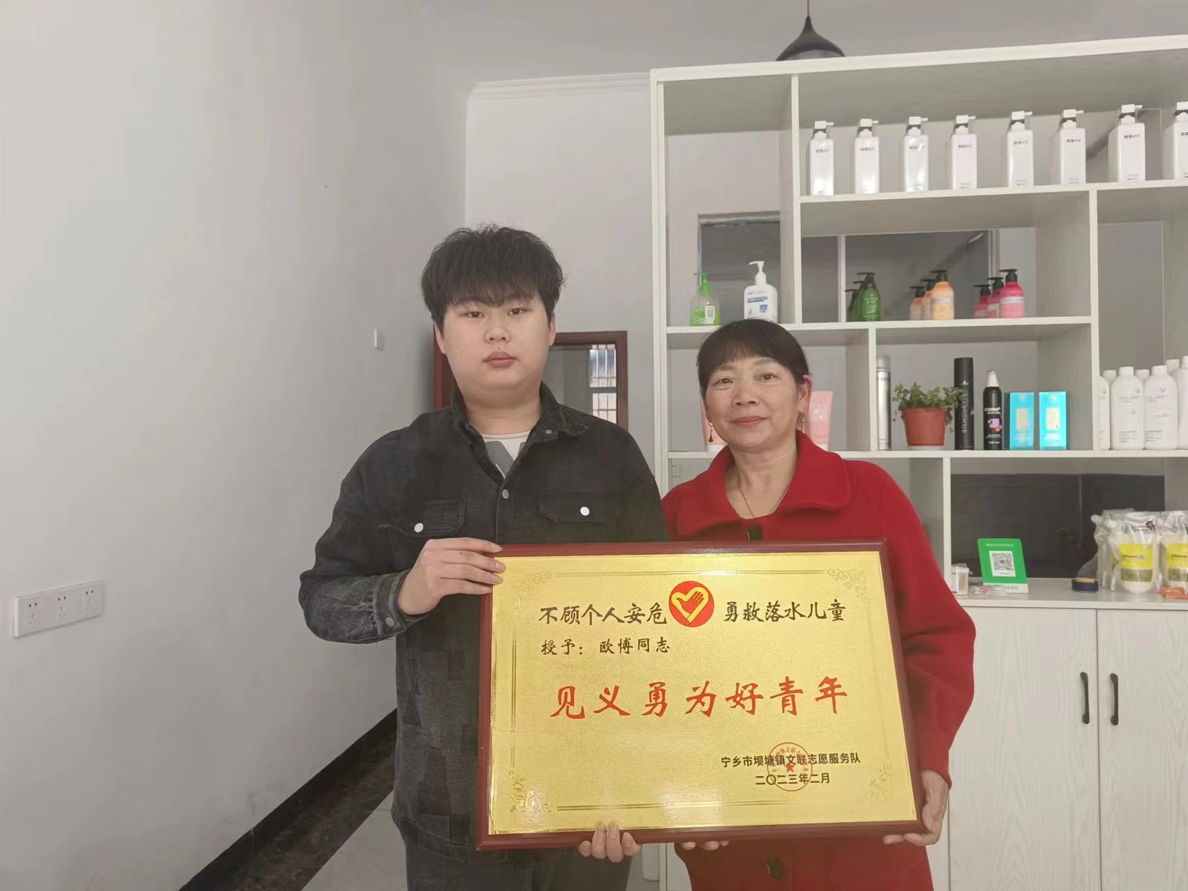 “快!快!有人掉水塘里了!”2023年2月7日下午3时30分,在湖南省宁乡市坝塘镇坝塘社区,21岁的理发师欧博正在自家理发店给顾客理发,突然听到两个小孩跑过来呼救,其中一个小孩甚至慌乱得说不清话。