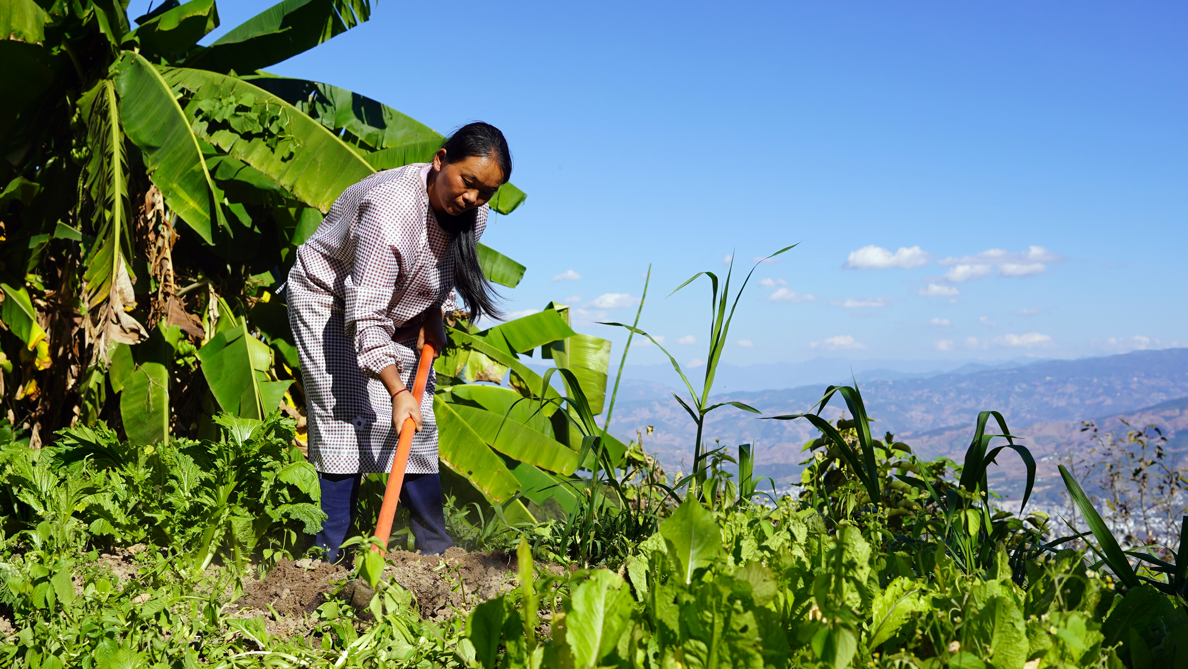 她把农业生产和家务安排得井井有条,天亮以前,把喂猪喂牛的草料切好放到圈门口,让丈夫拄着小木凳给牲口添料。天一亮,就骑上摩托车到田地里干三四个小时的农活,然后又匆匆赶回家给家人做饭,午饭后又继续到田里劳作,渴了就喝口山泉水,实在累得不行就在地头打个盹。晚上回到家里,还要照料丈夫和两个小叔子,照顾幼小的孩子和年迈的公公,为公公看病、维持全家的生计而忙碌。有人说她脚上就像安了“风火轮”,有人说她像一台“永动机”,一刻也闲不下来。