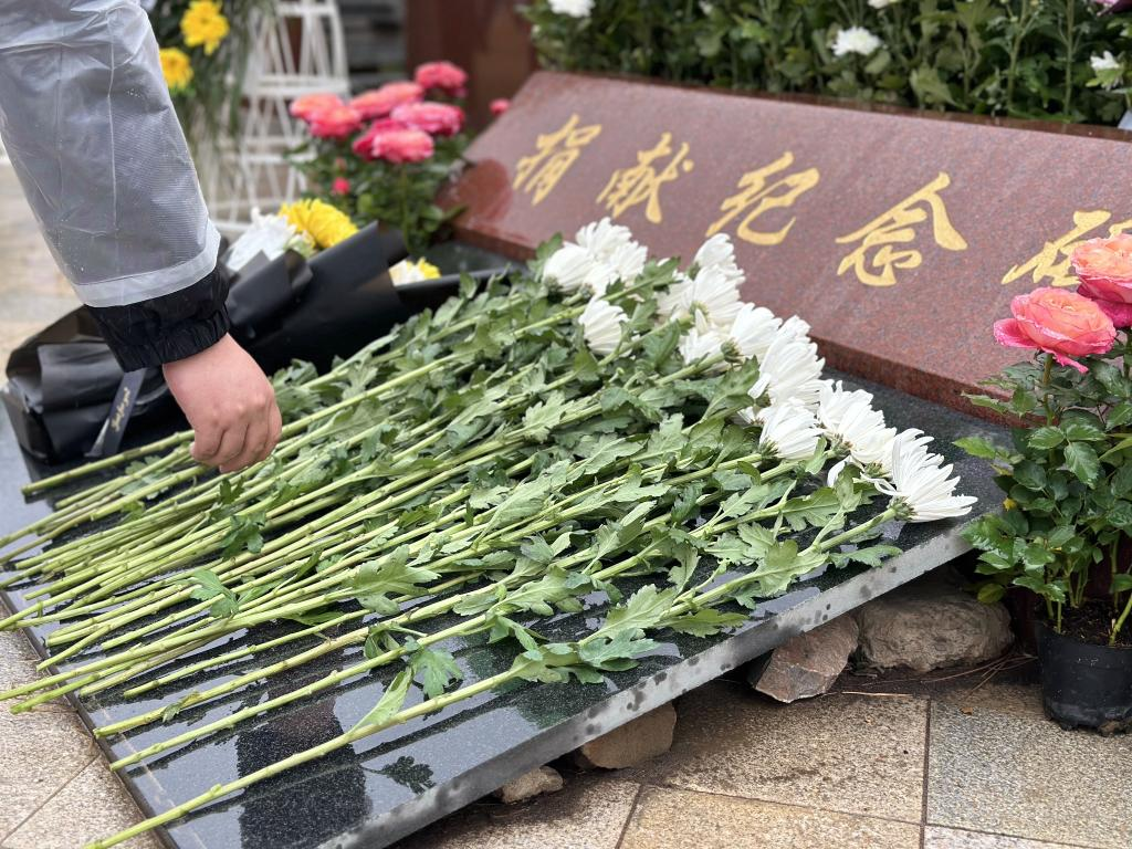 4月4日,宁夏遗体和人体器官捐献纪念园内,人们在捐献纪念碑前献上菊花。新华社记者 马丽娟 摄