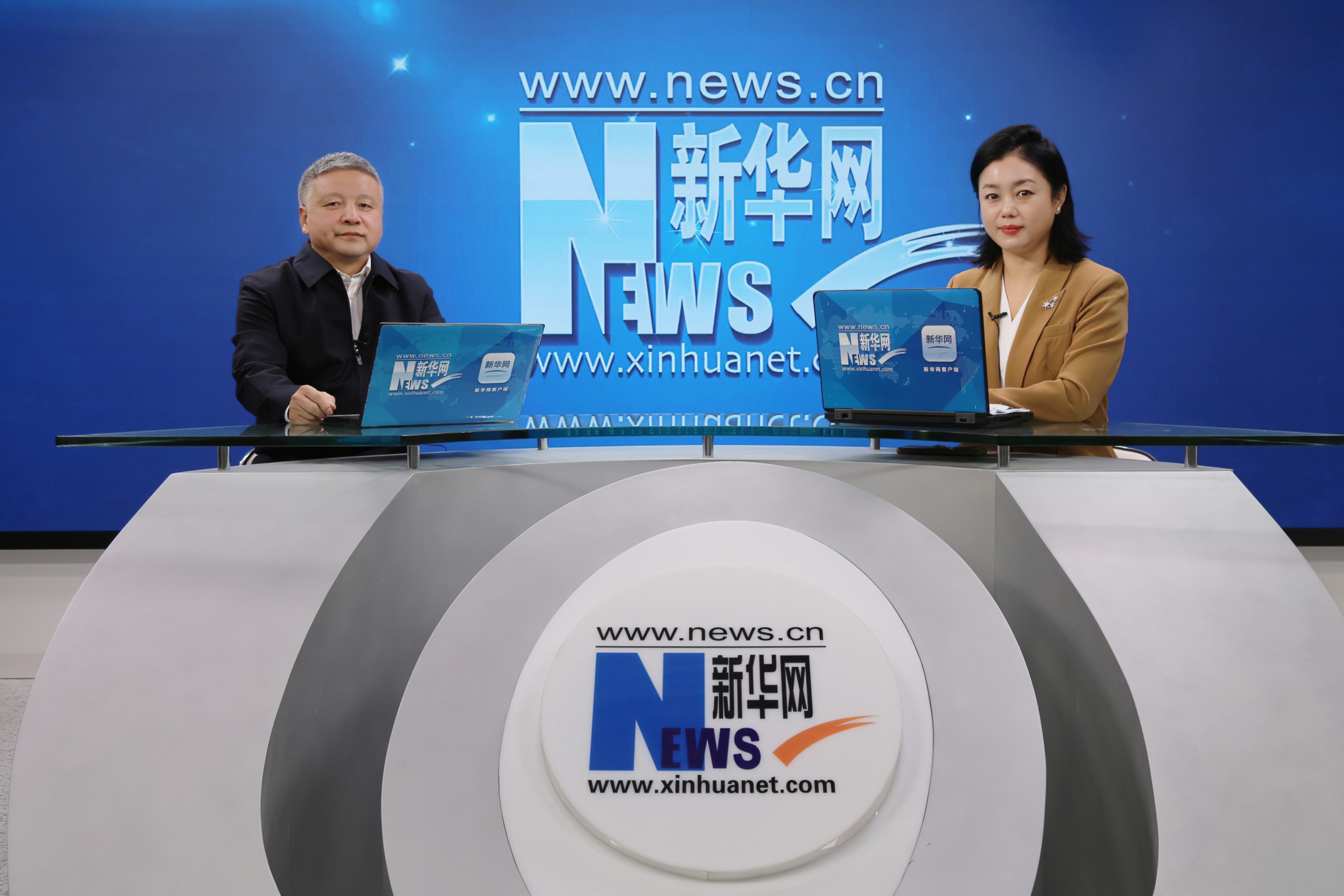 中国绿色碳汇基金会副理事长兼秘书长、国家林业和草原局一级巡视员刘家顺(左)做客新华网演播室接受采访。 李然 摄