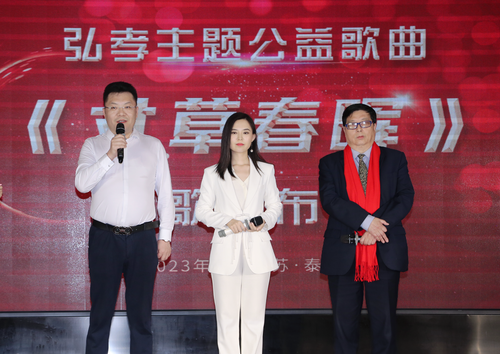 4月20 日,中国老龄事业发展基金会弘孝基金管理委员会推出的弘孝主题公益歌曲《寸草春晖》新歌发布会在江苏省泰州市成功举行。中国老龄事业发展基金会理事长于建伟,中国老龄事业发展基金会理事、弘孝基金管委会主任、中共北京华夏孝友会文化交流中心支部书记叶朝阳,中国老龄事业发展基金会副秘书长夏超,弘孝基金管委会常务副主任陶金海,弘孝基金管委会副主任杨嵛钦,弘孝基金管委会秘书长范万晴,弘孝公益大使席秋月等领导及企业代表、新闻媒体、歌手嘉宾、老年人代表三百余人出席了本次活动。