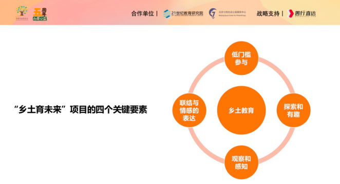北京七悦社会公益服务中心主任卢玮静以“‘乡土育未来’项目模式探究”为题,发布《向荣公益五年行动体系评估报告》和《乡土育未来项目模式评估》报告并进行解读。