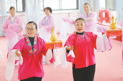湖南省永州市道县,老年大学学员们正在表演京剧《麻姑献寿》。何红福摄(影像中国)