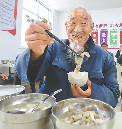 山东省临沂市费县马庄镇南天井汪村,老人正在老年爱心食堂就餐。许传宝摄(人民视觉)