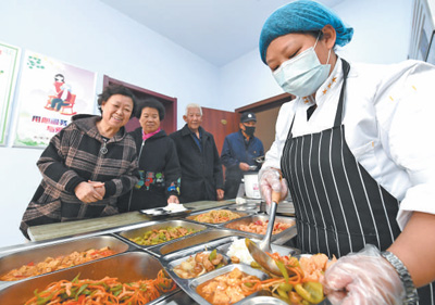 河北省张家口市怀来县沙城镇嘉馨园社区老年餐厅为老人提供就餐服务。孙慧军摄(影像中国)