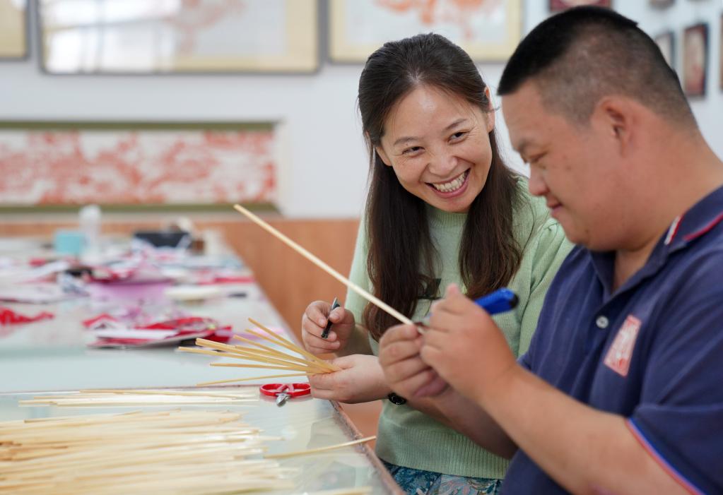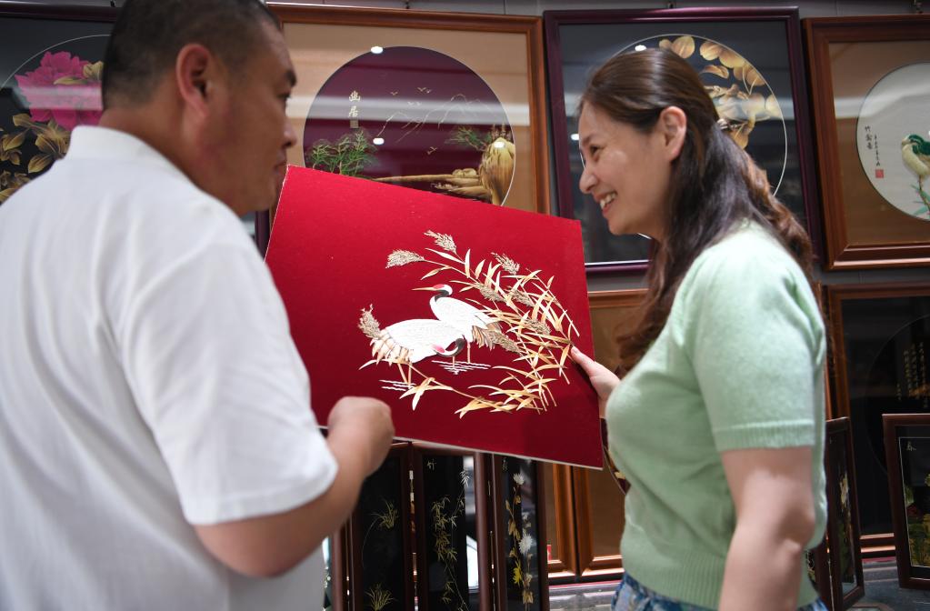 夫妻俩推行残疾人就业项目,每年拿出收入的20%作为传承经费,包吃包住免费向残疾人传授芦苇画手工技艺。据介绍,公司至今累计培训学员9000多人次,已发展成“国家级残疾人非遗传习基地”“国家级残疾人文化创意产业基地”。