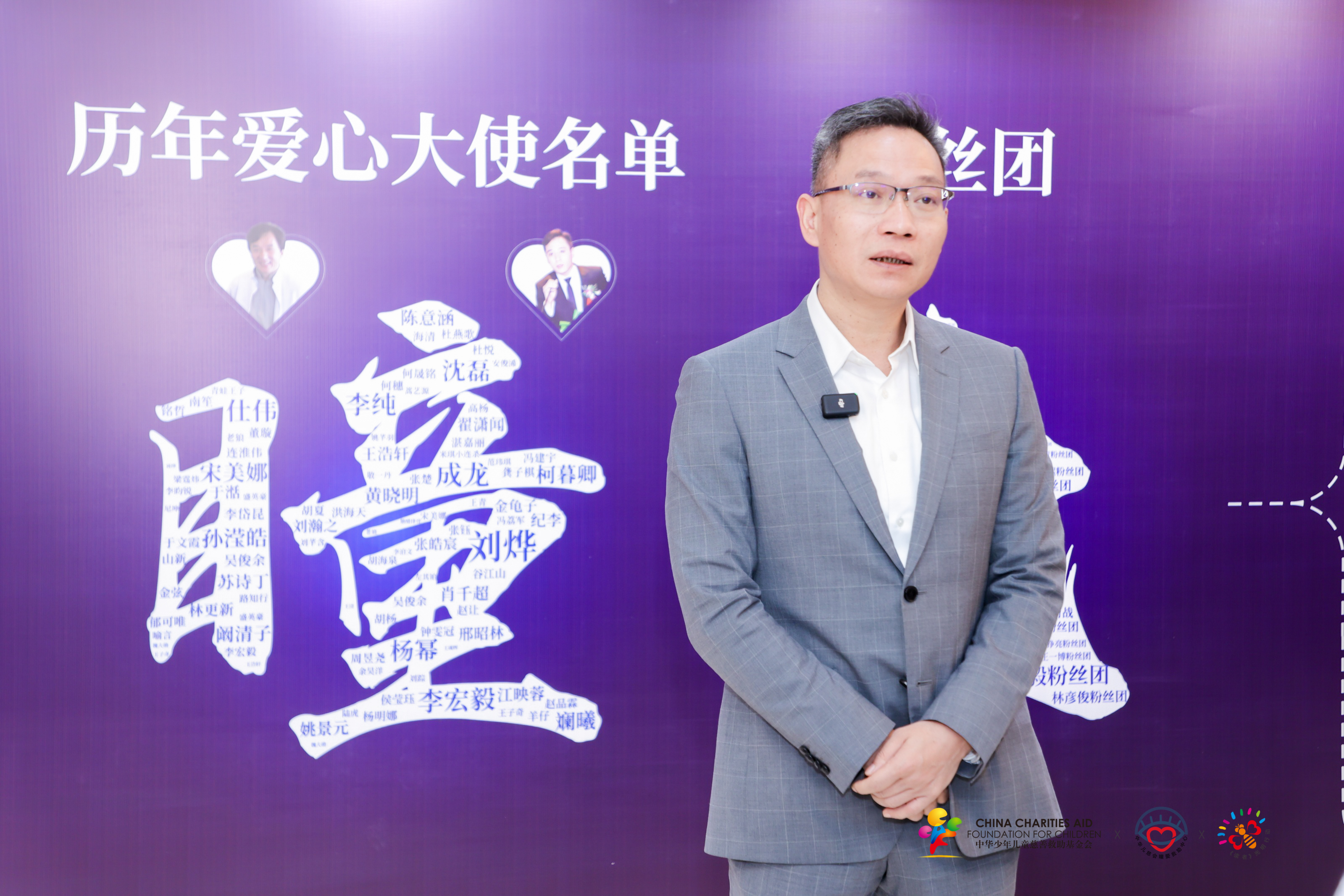 图为李晓峰在中华儿慈会瞳爱救助项目十周年活动现场 新华网发