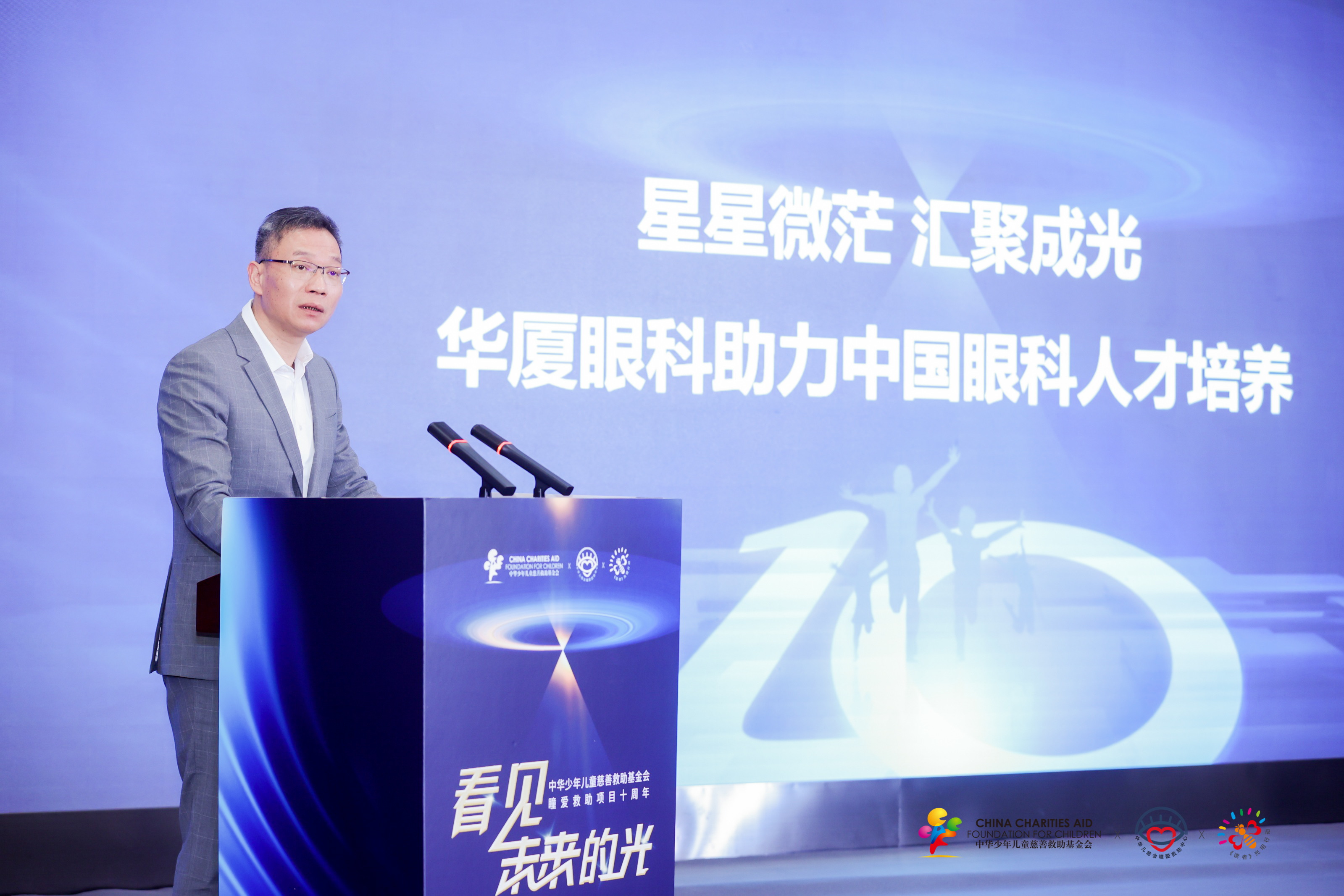 图为李晓峰在中华儿慈会瞳爱救助项目十周年活动现场致辞 新华网发