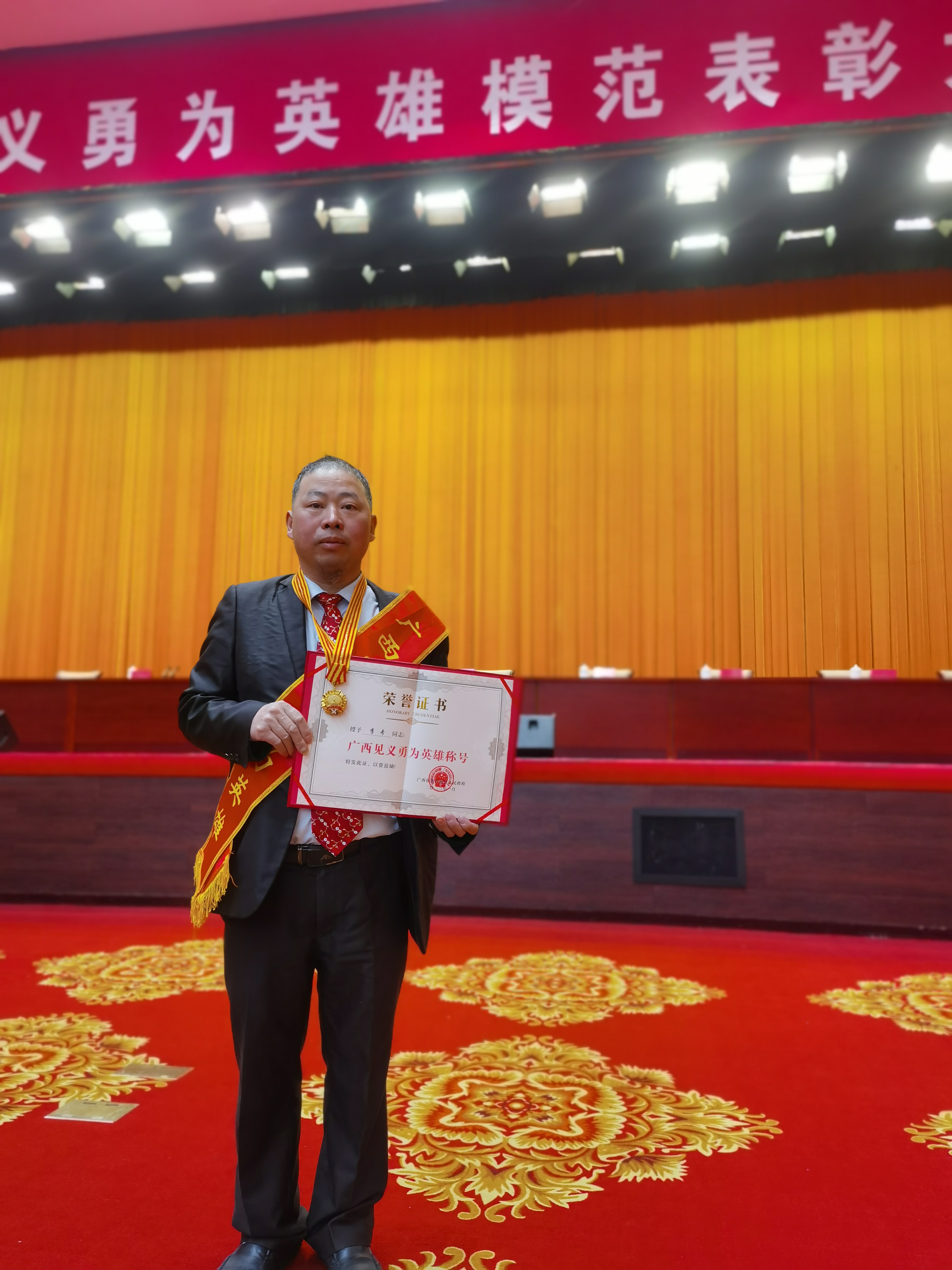 2020年4月25日凌晨3时许,桂林市兴安县发生一起火灾。李专不顾个人安危,在消防员赶到之前,理性从容地组织分工,与其他群众一起疏散住户、联系挪车、摸黑切断电源,勇救四十余人,在解除警报后默默地赶回学校坚持上课。