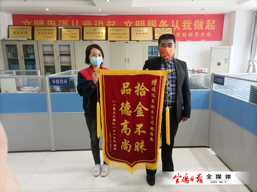 “姚师傅救了我母亲的命,我太感谢她了”,姚海艳拾金不昧的义举张先生一直记在心里。10月12日,他专程来到姚海艳公司,送上了写着“拾金不昧、品德高尚”的大红锦旗,表达他对姚海艳的感激之情。面对媒体记者和张先生时,姚海艳微笑着说:“他丢失了这么多的现金,肯定很着急的,虽然我的收入不高,但不是我的物品,我一分都不能拿,都应该还给人家,这是我应该做的”。