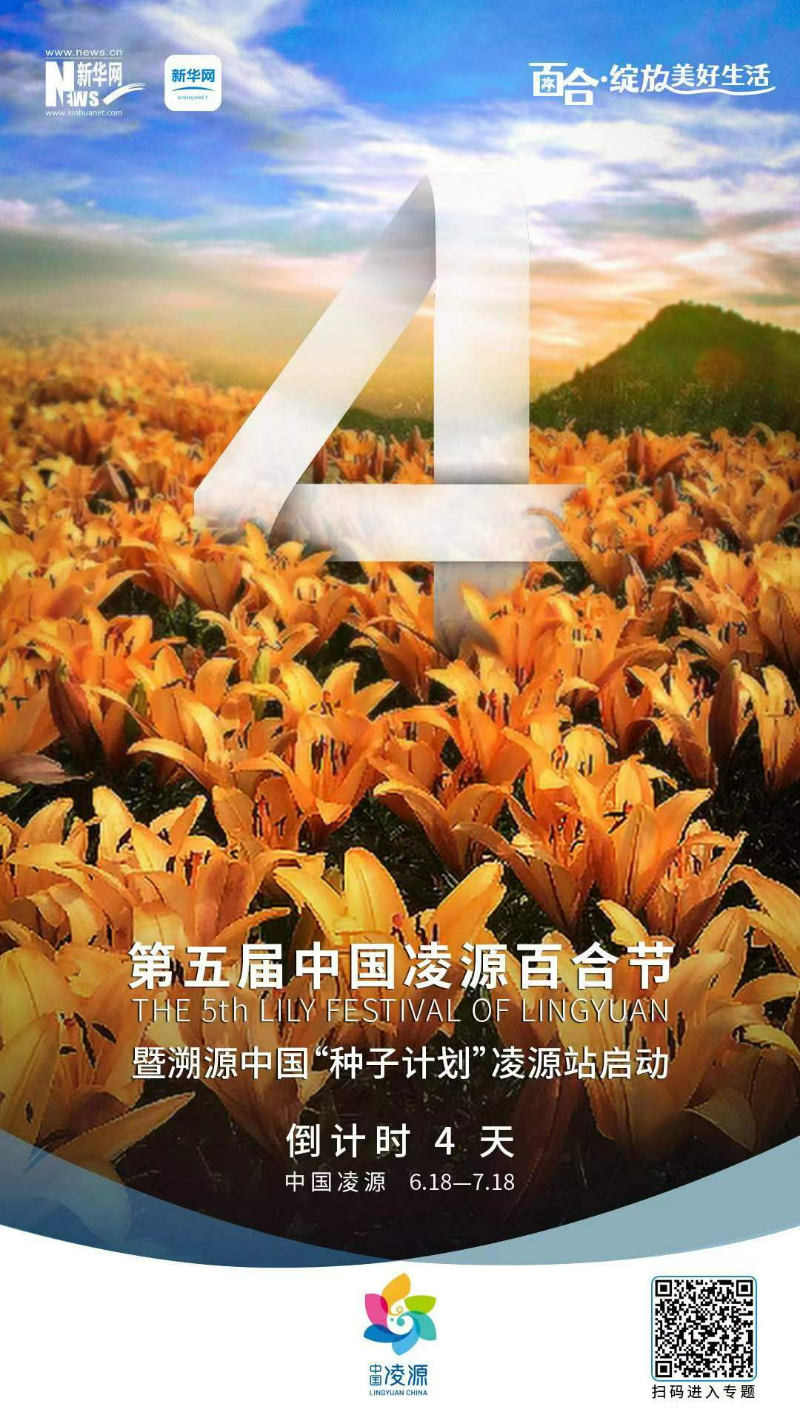 第五届中国凌源百合节将于6月18日在辽宁省凌源市百合博览园拉开帷幕,距离本届百合节开幕还有4天。本届百合节的主题为“百合绽放美好生活”,百合节展期将持续至7月18日,更多精彩内容敬请关注新华网。