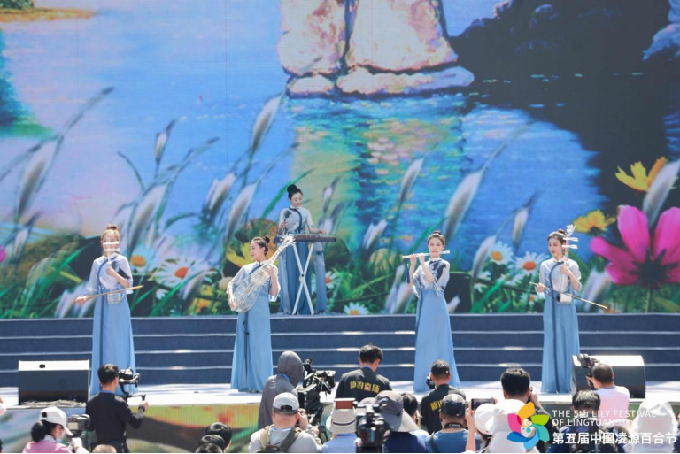 6月18日,第五届中国凌源百合节于辽宁凌源中国百合博览园开幕。本届百合节以“百合绽放美好生活”为主题,汇聚产业发展磅礴力量,以数字化赋能乡村振兴。图为女子水晶乐坊现场表演《国乐经典》。