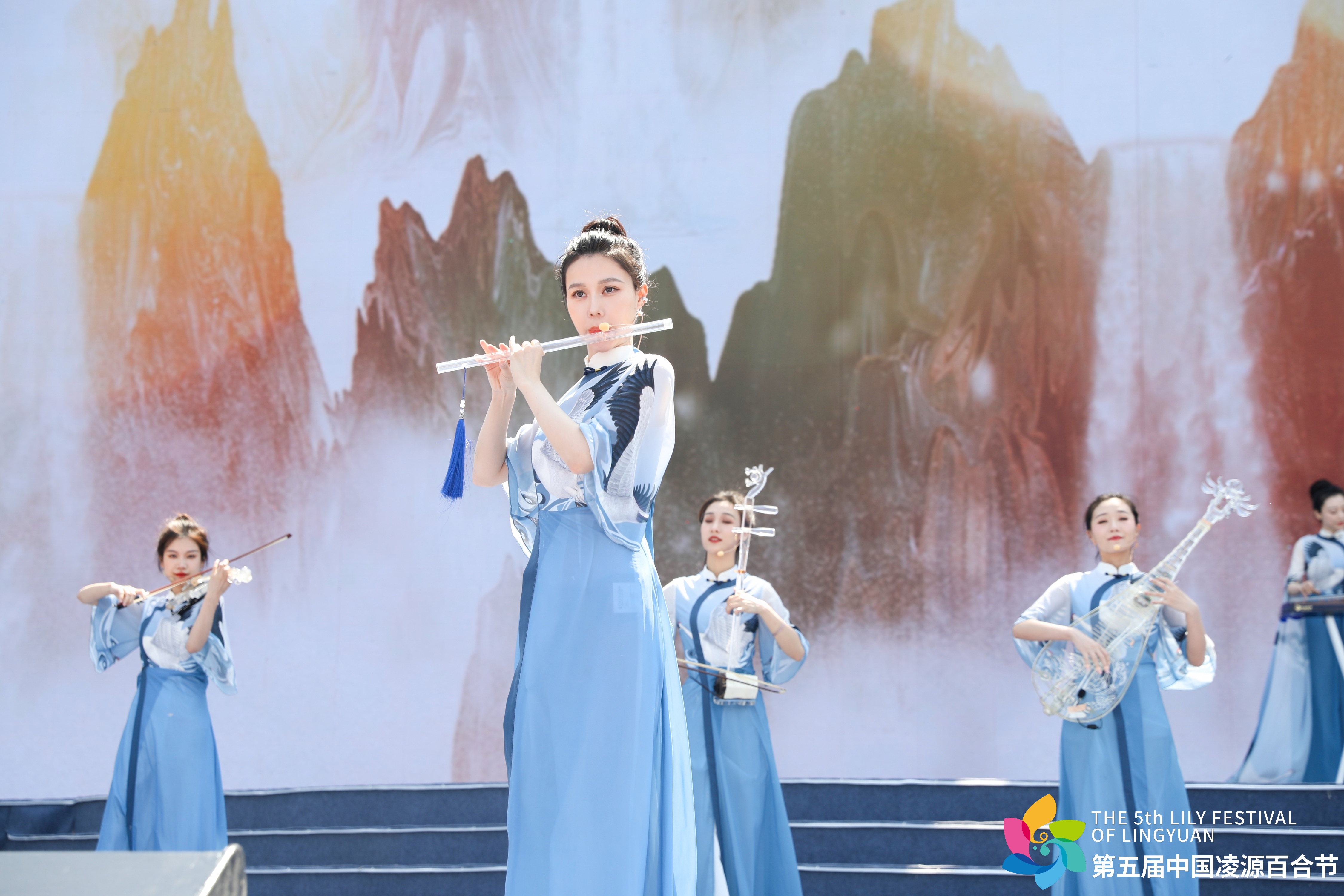 6月18日,第五届中国凌源百合节于辽宁凌源中国百合博览园开幕。本届百合节以“百合绽放美好生活”为主题,汇聚产业发展磅礴力量,以数字化赋能乡村振兴。图为女子水晶乐坊现场表演《花语湖畔》。pagebreak